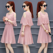 2017新款夏装韩版时尚女装雪纺连衣裙中长款修身显瘦气质名媛夏季