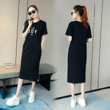 2017新款夏装韩版休闲时尚短袖T恤裙修身显瘦连衣裙女中长款潮