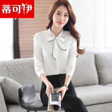 时尚新款衬衫女装长袖衬衣女士上衣职业装韩版修身纯色蝴蝶结白色