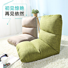 木优棉麻懒人沙发创意单人可折叠榻榻米床上椅子卧室小沙发飘窗垫