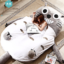 木优懒人沙发单人双人 成人创意卡通龙猫床 可爱加厚榻榻米