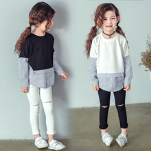 童装女童春装2017新款 儿童春款不规则长袖T恤宝宝拼接衬衫卫衣
