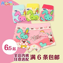 6条包邮 儿童短裤爱念女童内裤纯棉莱卡平角裤四角平脚底裤蕾丝兔