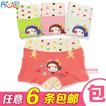 6条包邮纯棉女童平角内裤 卡通儿童平脚短裤 全棉女宝宝四角裤