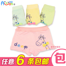 6条包邮 爱念女童短裤莫代尔棉四角裤 条纹纹长颈鹿女童平角内裤