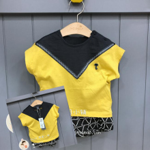 高端出口童装 2017夏款男童宝宝娃娃口袋短袖T恤短裤大屁屁裤套装
