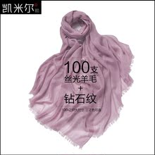 凯米尔酷 100支钻石纹纯色羊毛围巾披肩 2015秋冬女款正品加长款