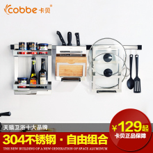 卡贝 厨房置物架套装 壁挂304不锈钢厨具刀架挂件 收纳架调味料架