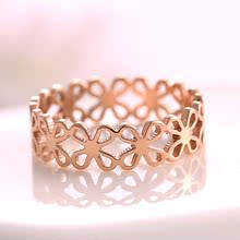 韩版时尚气质镂空四叶草戒指镀18K玫瑰金钛钢彩金尾戒指环礼物女