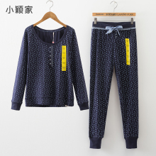 T421欧美单 甜美可爱女士棉质长袖睡衣睡裤家居服两件套装