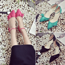 韩版2017春秋新款气质尖头细跟高跟鞋甜美蝴蝶结单鞋女鞋黑色红色