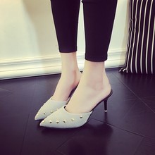 春季新款细跟高跟鞋尖头浅口时尚性感百搭套脚凉拖鞋半拖鞋女