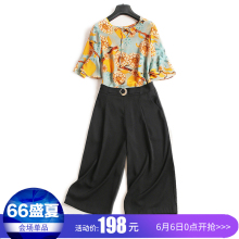 天天特价2017新款夏桑蚕丝喇叭袖雪纺T恤+七分阔腿裤宽松两件套装