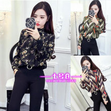 2017春季新款韩版气质高领百搭长袖上衣+修身开叉长裤时尚两件套