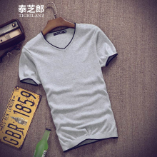 t恤男短袖v领潮夏季精神社会小伙韩版潮流学生半截袖体恤修身半袖