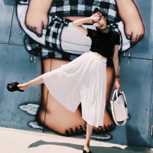 2017夏季新款百褶雪纺裙裤女松紧腰高腰七分裤宽松显瘦