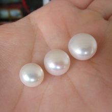 天然珍珠半孔裸珠散珠半成品 吊坠戒指9-10-11mm扁圆强光近无暇