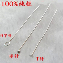 925纯银9字针 圆球针 T针 diy手工耳环配件 纯银圆头针平头针