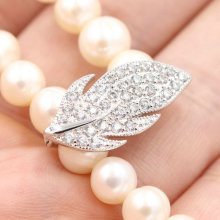 925银配件 珍珠项链夹扣 毛衣链固定夹层扣子 锆石叶子花式扣 diy