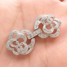 925银扣子 珍珠项链手链扣子 豪华唯美花形大扣子 锆石花扣 diy