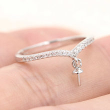 s925银戒指配件 珍珠戒指空托 活口可调节指环 diy锆石吊坠戒指