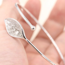 925银珍珠手链 珍珠手镯空托 diy莲花手环孔托配件 唯美叶子手镯