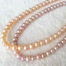 天然珍珠半成品近椭圆强光无暇珍珠项链手链diy散珠 紫粉色5-6
