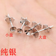 s925纯银耳针配饰 珍珠银配件 玉石珍珠耳钉耳环空托 大小盘 diy