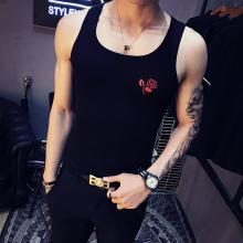 夏季韩版男士运动纯棉背心潮修身型青年打底印花紧身健身短袖T恤