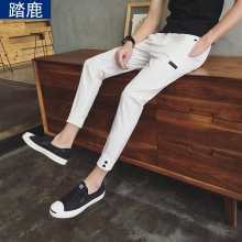 裤子男休闲裤夏季修身小脚裤九分裤男束脚松紧哈伦裤八分棉麻9分