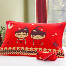 鑫泉纯棉加厚枕巾婚庆大红色结婚礼物枕头巾一对全棉