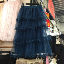 夏季新款韩版女装高腰气质 蕾丝网纱层层蛋糕裙半身裙长裙女裙子