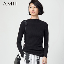Amii[极简主义]春季新品纯色修身毛衣女装针织打底衫套头上衣