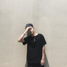 暗黑系 男士下摆断开设计青年潮流宽松版型纯棉短袖圆领T恤潮流