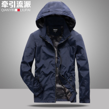 工作服定制2016新款春秋连帽青年薄款外套时尚休闲运动防水夹克男