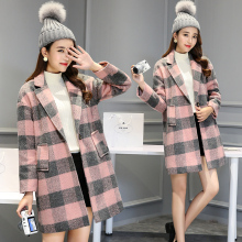2016秋冬装加厚复古中长款呢子大衣韩版宽松显瘦格子羊毛呢外套女