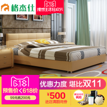格杰仕主卧床1.8米双人床现代简约婚床榻榻米软包皮艺床储物软床