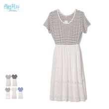 阁楼花开 春夏新款韩版小清新甜美短袖中长款拼接连衣裙 裙子女