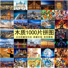 时代广场世界名胜古迹风景点木质成人拼图1000片进口品质减压礼物