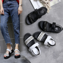 真皮凉鞋女水钻学生夏2017新款韩版潮平底百搭厚底中跟时尚罗马鞋