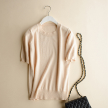 蓝依伲2017春夏新款针织短袖T恤女圆领羊绒衫短款打底衫纯色上衣