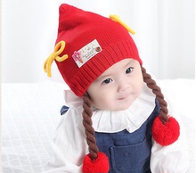 韩版婴儿帽子秋冬3-6-12个月女宝宝假发毛线护耳针织帽儿童帽1-2