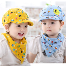韩版婴儿帽子秋冬0-3-6-12个月男女宝宝纯棉套头帽口水巾套装夏