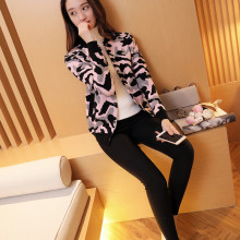 婕秋韩版2016春装新款 迷彩针织开衫休闲短款毛衣女外套夹克衫