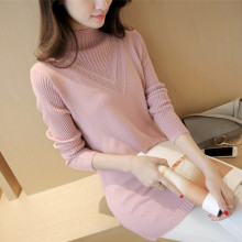 秋冬女装针织衫套头长袖韩版中长款打底衫宽松大码半高领毛衣外套