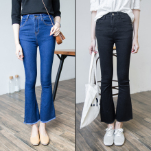 韩国毛边喇叭裤女牛仔长裤微喇流苏九分黑色牛仔裤子女显瘦修身潮