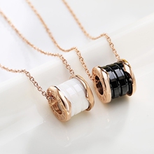 欧美罗马数字黑白弹簧陶瓷项链女钛钢玫瑰金锁骨链甜美彩金项链