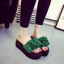 拖鞋女外穿平底2017夏季新款厚底花朵一字拖松糕沙滩凉拖鞋女鞋潮