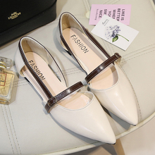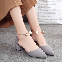 2017春夏新款粗跟低跟一字扣带单鞋女中跟显瘦尖头5cm高跟鞋凉鞋
