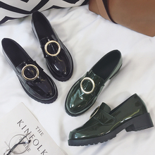 韩版2017春季新款百搭女鞋英伦风中跟乐福鞋学生单鞋平跟小皮鞋女